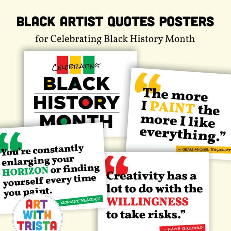 Set of four printable, letter-size posters featuring quotes from influential black artists. Brighten up your art room for Black History Month!